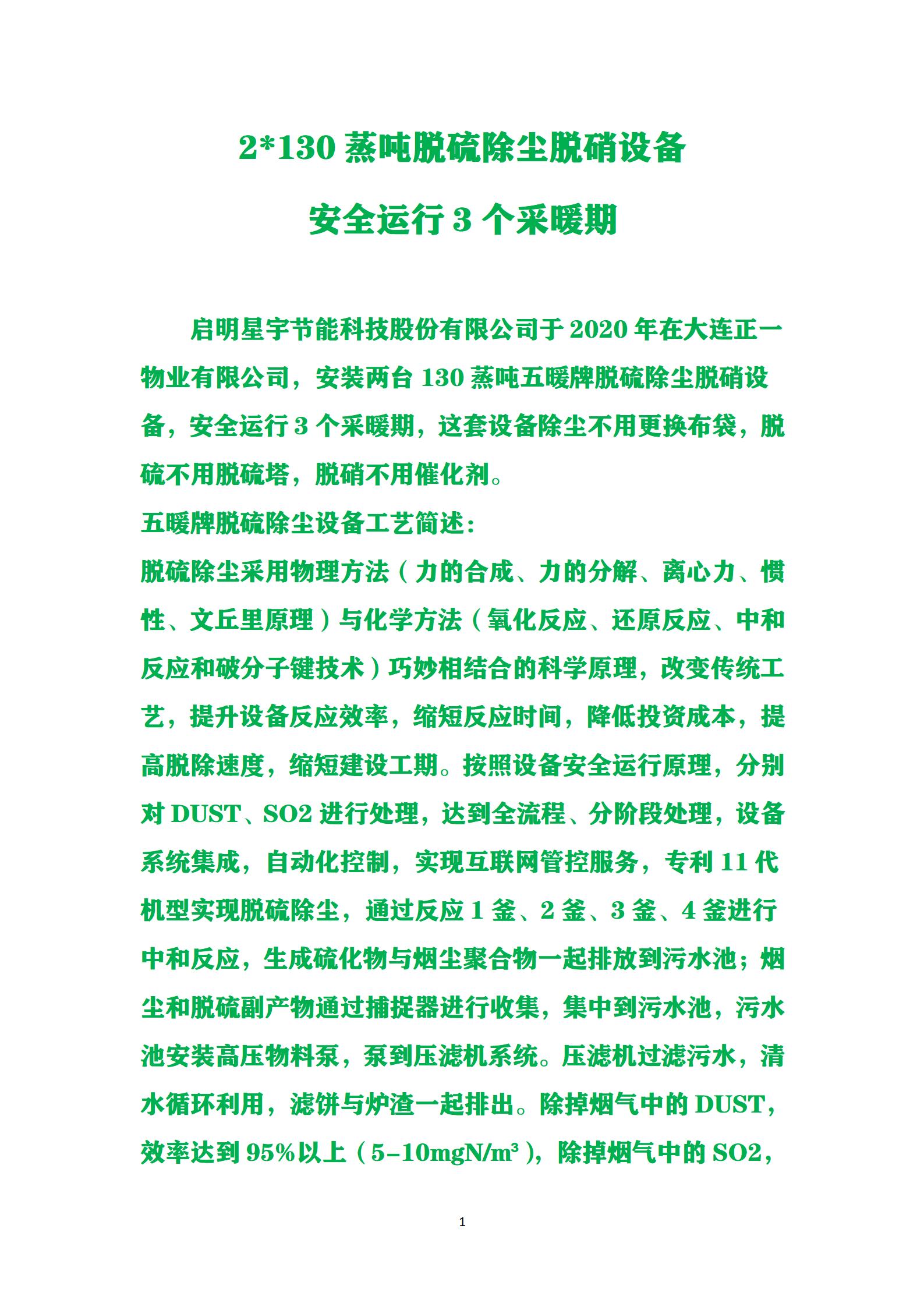 遼寧省大連正一物業有限公司項目-鍋爐2*130蒸噸