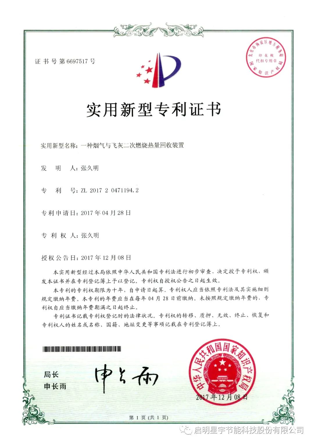 新年巨著,啟明星宇節(jié)能科技股份有限公司《工業(yè)廢氣零排放技術(shù)研究》科研論文在《中國(guó)科技人才》期刊成功發(fā)表