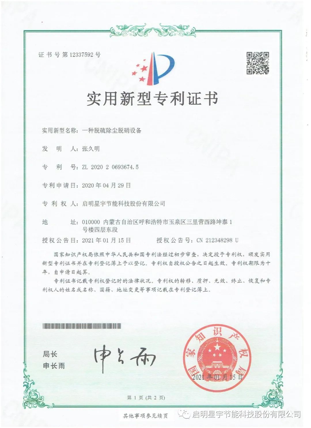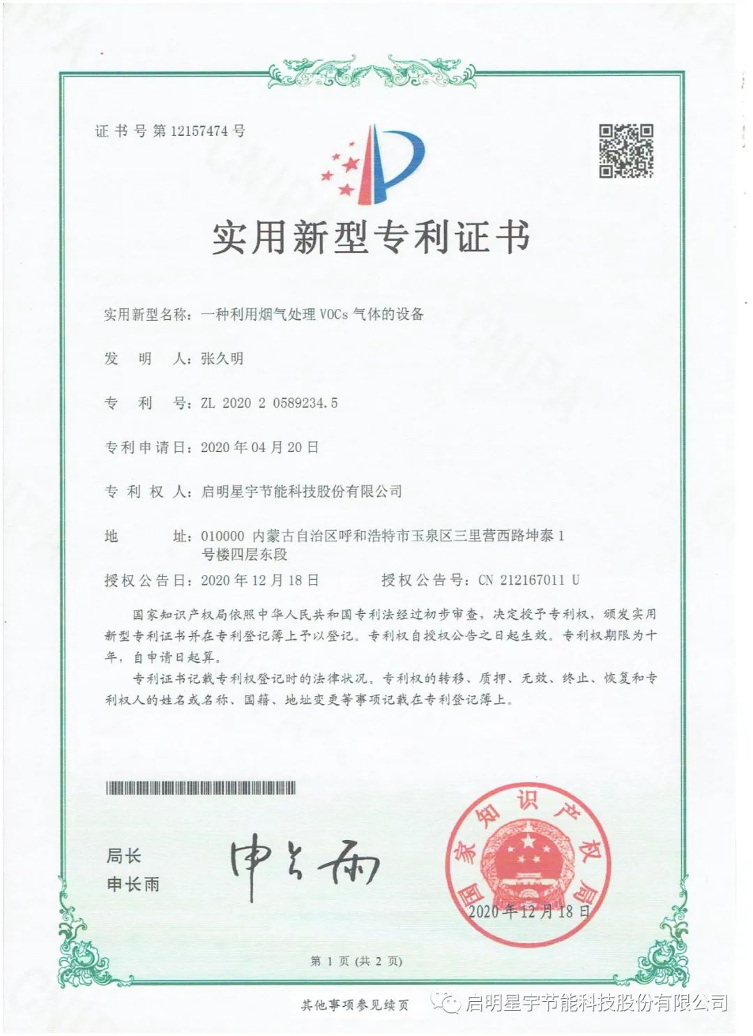 新年巨著,啟明星宇節(jié)能科技股份有限公司《工業(yè)廢氣零排放技術研究》科研論文在《中國科技人才》期刊成功發(fā)表