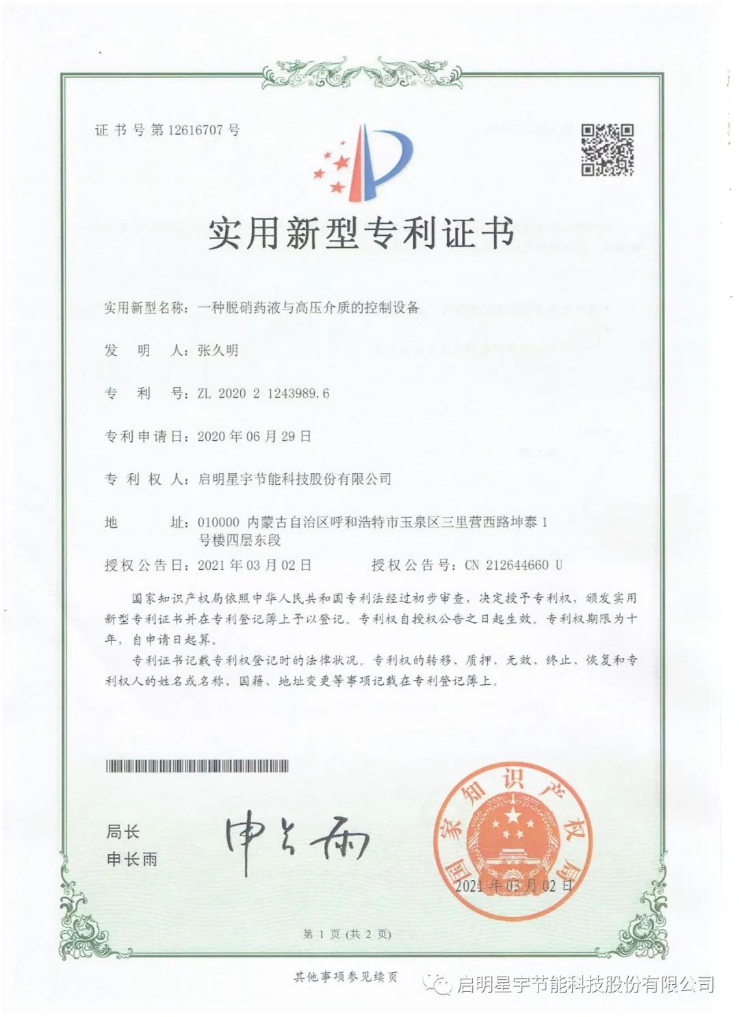 啟明星啟明星宇節(jié)能科技股份有限公司,2024年產(chǎn)品研發(fā)獲獎匯報