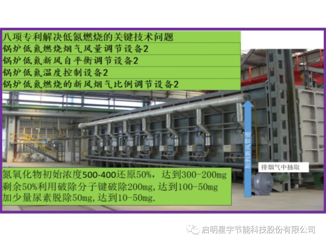 1低氮燃燒部分(熱電廠普遍采用工藝):低氮燃燒也稱爐內脫氮,就是采用各種燃燒技術手段來控制燃燒過程中NOx的生成,又稱低NOx燃燒技術。采用自主發明的8項專利技術,鍋爐低氮燃燒煙氣風量調節設備2項專利;鍋爐低氮新風自平衡調節設備2項專利;鍋爐低氮溫度控制設備2項專利;鍋爐低氮燃燒的新風煙氣比例調節設備2項專利,降低NOx的燃燒排放濃度。