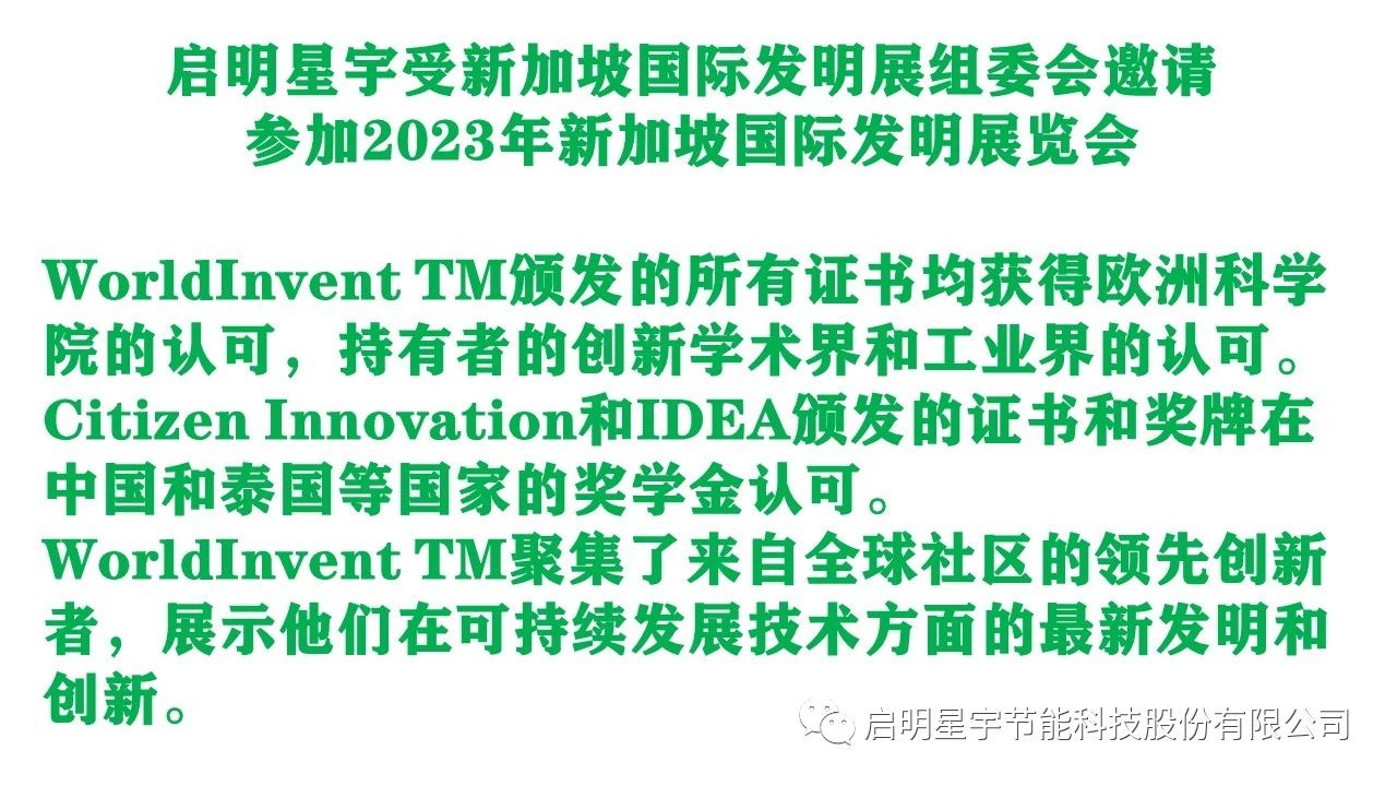 熱烈祝賀:啟明星宇節(jié)能科技股份有限公司,參加48屆日內(nèi)瓦國際發(fā)明博覽會,慶祝iIFIA國際發(fā)明聯(lián)合會成立55周年!
